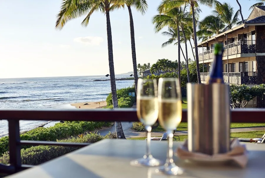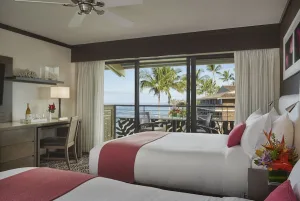 Hotel amenities include a fitness center, swimming pool, whirlpool spa, sundry shop, poolside bar, and day spa. A beach activities hut provides guests with snorkel gear, surfboards, beach chairs, and any other equipment necessary for a spectacular day at nearby Poipu Beach. Red Salt, a contemporary on-site restaurant in a picturesque oceanfront setting, offers a diverse Hawaiian menu featuring local seafood and produce. The cocktail lounge remains open until midnight seven days a week, and room service is available 24 hours per day.