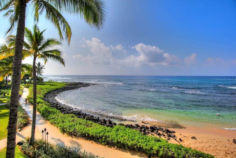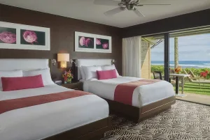 Koa Kea Hotel and Resort is a luxurious beachfront boutique hotel located on Kauai’s pristine southern shore. The luxury property underwent a $5 million renovation in 2022, and now features a style that incorporates the brilliant colors of the Garden Isle: lustrous koa wood, the red earth of Waimea Canyon, the lush greens of the forest, and the deep azure blues of the sea and sky.