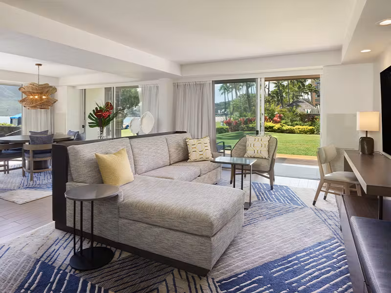 Each room and suite offers a serene oasis, adorned with stylish decor and state-of-the-art amenities. Expansive windows frame stunning views of the vibrant island scenery, whether it’s the sapphire blue Pacific Ocean, the lush emerald cliffs, or the vivid flora of the hotel gardens. The Royal Sonesta Kauai offers a range of on-site dining experiences, all showcasing the vibrant flavors of the island. The hotel’s fine-dining restaurant serves a fusion of Hawaiian and global cuisines, and the casual beachfront bar provides the perfect setting to unwind with a handcrafted cocktail as the sun sets over the ocean.