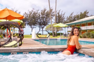 Kauai Shores Hotel is a family-friendly retreat located near Lae Nani Beach. Here, you’ll find a grocery/convenience store, a relaxing terrace, and a cozy firepit. The hotel boasts a beautiful white sand beach, beachfront dining, and comfortable sun loungers for soaking up the sun. For ultimate relaxation, make sure to visit the hot tub. The onsite restaurant, Lava Lava Beach Club, offers ocean views and a delightful brunch experience. The hotel also features a garden, a playground, and laundry facilities for all guests to enjoy.