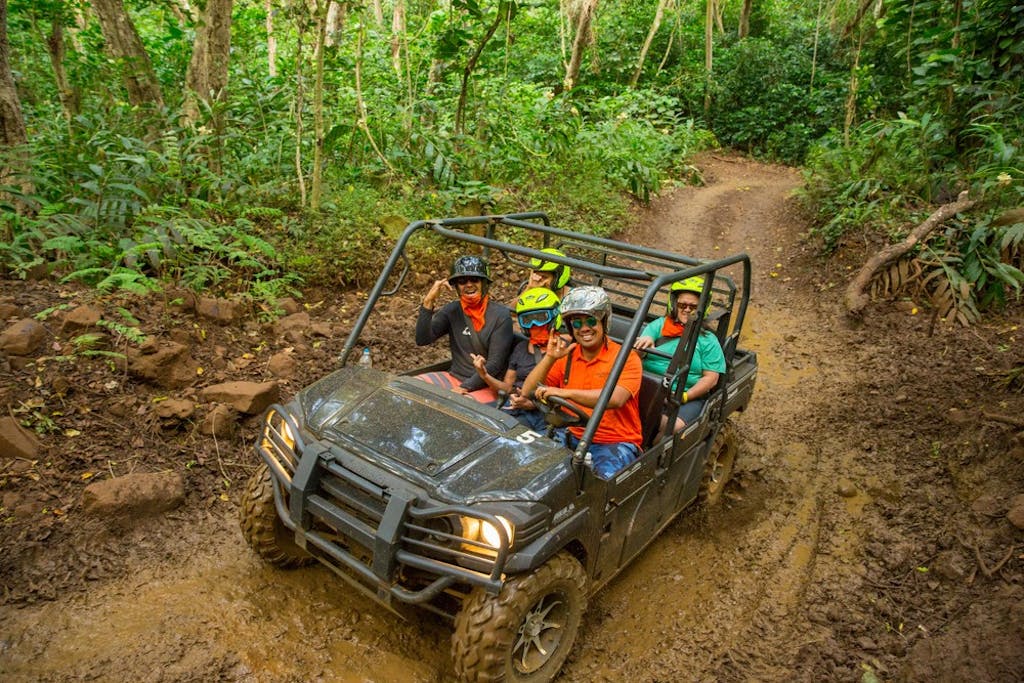 Join us for an awe-inspiring 3-hour off-road scenic tour through Kipu Ranch on the beautiful island of Kauai. This tour offers a diverse landscape, abundant wildlife, and spectacular views, making Kipu Ranch one of Hawaii’s premier eco-tour destinations. Ride through lush green pastures, descend into the tropical Huleia Valley, and journey beneath the canopy of a rainforest, all leading to the stunning backdrop of Mt. Haupu, Kauai’s untouched paradise.