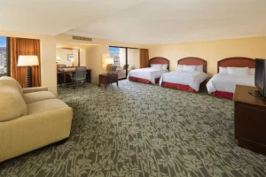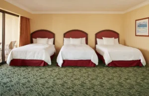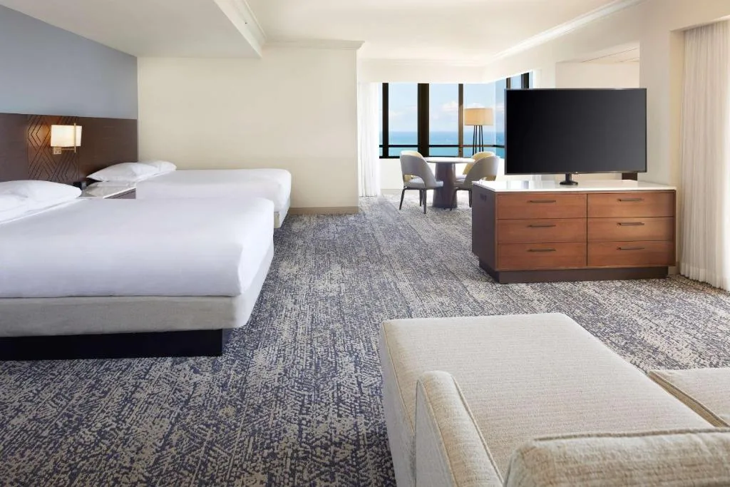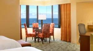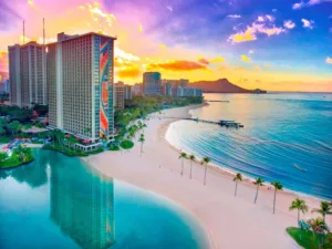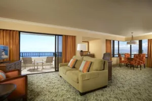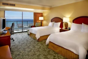 Located on 22 acres of pristine beachfront property, the Hilton Hawaiian Village Waikiki Beach Resort is a destination in itself. With five resort towers, each offering different views and amenities, visitors can select accommodations to suit their individual tastes. Hilton Hawaiian Village comprises several distinct towers, each with its unique style and offerings. For instance, the iconic Rainbow Tower is known for its beachfront rooms with unobstructed ocean views, while the Ali’i Tower offers an exclusive experience with a private pool, bar, and concierge. All rooms are equipped with modern conveniences such as high-speed Wi-Fi, safes, and HDTVs. Bathrooms are sleek and functional, adorned with premium fixtures and a selection of refreshing toiletries.