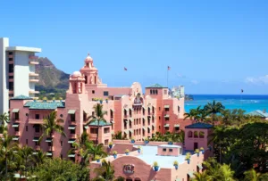 A recognizable pink hotel on the shores of Waikiki, The Royal Hawaiian Hotel is not just a Hawaii landmark, but a chic and modern luxury resort in a sought-after beachside destination. Known by many as the “Pink Palace of the Pacific,” the resort offers guests a true Hawaiian experience with access to numerous cultural activities.