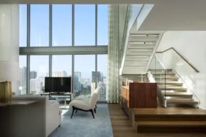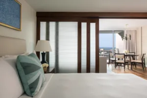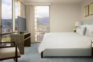 Ritz-Carlton debuted the completion of its Waikiki resort in October 2018 with the opening of the Diamond Head Tower, 245-residence luxury high rise. Designed by Guerin Glass Architects, the two towers of the resort reflect the colors of the makai (ocean-side) and the rich greens of Koolau Mountain Range. The infinity pool of the Diamond Head Tower is the highest in Waikiki, offering staggering views of the world’s most famous coastline. Private cabanas with smart televisions, refrigerators, and daybeds are available.