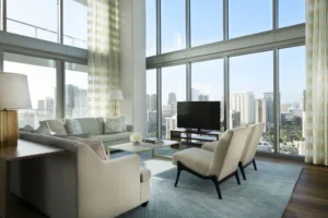 Offering “the amenities of a hotel with the convenience of a residence,” the Ritz Carlton Residences Waikiki Beach excels in providing the comforts of a luxury home and the shopping, dining, and beachgoing options of a major resort property.