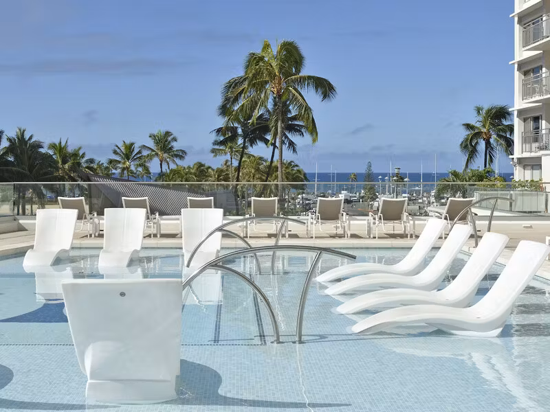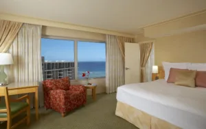 The property has two heated swilling pools to enjoy either on the ground floor or rooftop. A fitness center is open 24 hours, a business center, Laundry facilities, high-speed internet, and free parking. Guests can relax poolside or on the beach with complimentary beach towels. On-site dining facilities include Cinnamon’s at the Ilikai for breakfast, lunch or dinner, Mariposa, which offerers Mediteraning cuisine; Pesca, an upscale seafood offering and the Tropics Restaurant and bar with outdoor seating.