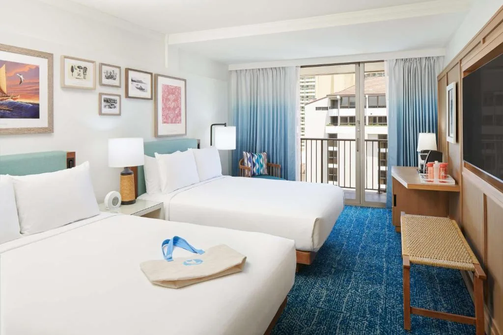 The Outrigger Reef on the Beach provides high-style accommodations in a desirable beachside location. A choice hotel for couples seeking a romantic getaway, the Outrigger Reef offers affordable wedding packages and is one of the only hotels in Waikiki that offers a complimentary vow renewal ceremony on the beach. A modern beachfront haven deeply intertwined with Hawaiian music and traditions. Freshly updated guestrooms and stunning luxury suites emanate a contemporary Hawaiian ambiance. Experience genuine Hawaiian heritage through handpicked art, signature events, and engaging crafts. The renowned Voyager 47, serving exquisite sunrise and sunset beverages, boasts the most captivating beachfront vistas in all of Waikiki. Savor a farm-fresh breakfast at Monkeypod Kitchen by Merriman, relishing the vibrant flavors of Hawaii’s locally-sourced, organic offerings.