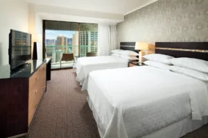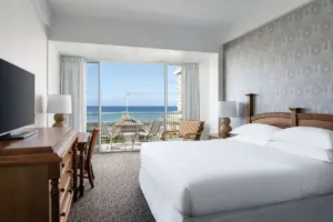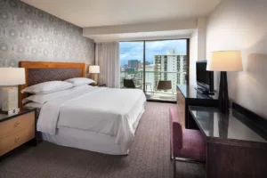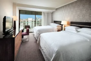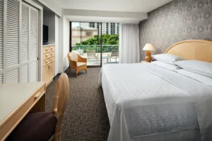 A beautiful resort hotel built on the former estate of Princess Kaiulani, the Sheraton Princess Kaiulani Hotel offers a luxurious and exciting vacation experience in the heart of Waikiki. The hotel is composed of three buildings, the Ainahau Tower, the Princess Wing, and the Kaiulani Wing. All guestrooms in the Ainahau Tower and the Kaiulani Wing feature private balconies. All of the hotel’s rooms and suites feature signature Sheraton beds with premium linens, air conditioning, mini refrigerators, and coffee makers.