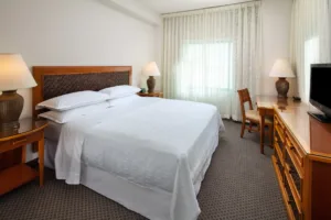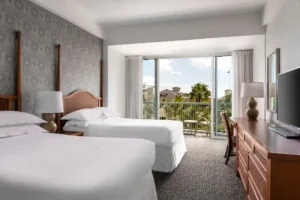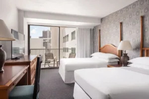 Guests staying at the Sheraton Princess Kaiulani may also choose to take part in the “Stay at One Dine at All” program and visit three additional resort properties in the Waikiki area. Numerous other bars, restaurants, and nightclubs are within minutes of the hotel on Kalakaua Avenue, and several popular shopping destinations can be found along the same route. The Honolulu Zoo, Kapiolani Park, and the Waikiki Aquarium can easily be reached on foot, and Pearl Harbor, Iolani Palace, and many other famous historic destinations are within 15 miles of Waikiki. Self-parking is available at the hotel.