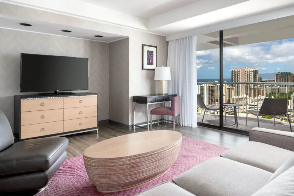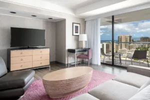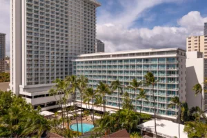 An on-site fitness facility makes it easy to maintain a personal fitness regimen, and nearby Kapiolani Park is perfect for a daytime run. Visitors looking to spend some time in the sun can relax poolside or take advantage of “Big Kahuna Beach Service” and take towels and beach chairs down to nearby Waikiki Beach for the day.