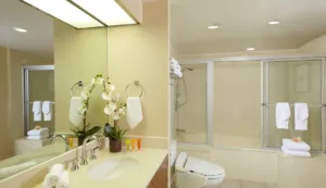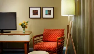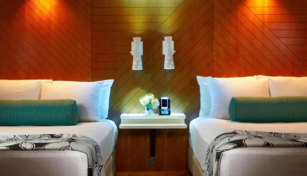 Hotel amenities include a daily continental breakfast, a refreshing swimming pool and sundeck, deep soaking bathtubs in every room, and calming water features with a soothing koi pond. The Aqua Oasis offers a variety of room options fit for solo stays and family vacations, including 1-bedroom suites with a kitchenette.