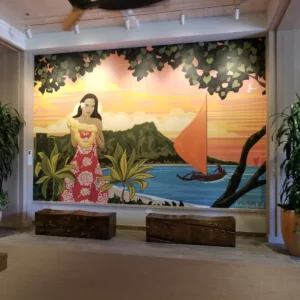 The Queen Kapiolani Hotel also offers a unique cultural experience rich in the arts and music. The lobby features commissioned works by several cherished local artists Mike Field, Nick Kuchar, and Katie Borden, and photos and paintings from the “Golden Age of Waikiki”. The Greenroom Gallery is home to an Artist in Residence program. The 2nd Floor Royal Art Gallery features royal portraits, including Queen Kapiolani herself.