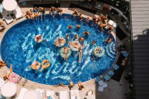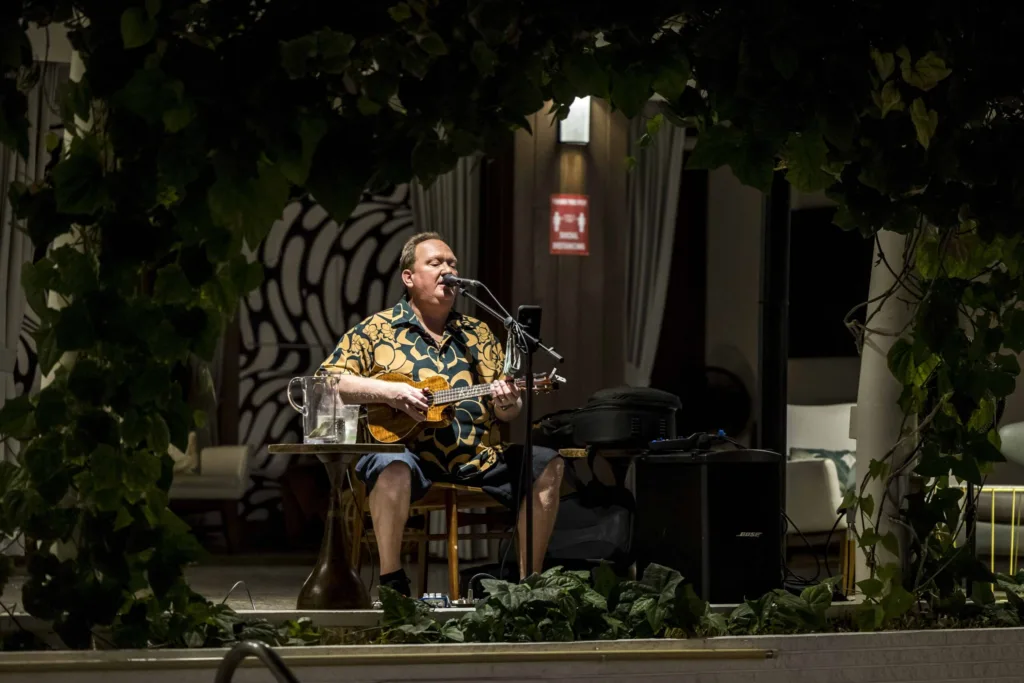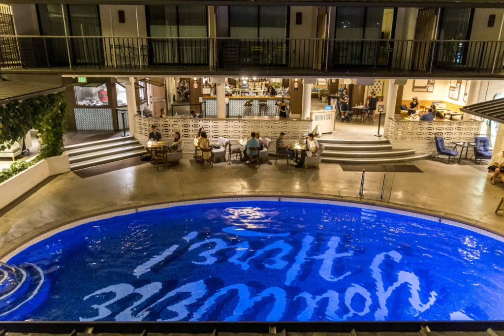 The Surfjack’s Swim Club is its outdoor pool area, where nightly movie screenings and live music performances encourage Hawaii residents and guests to interact and get to know one another. Even the vintage style of the Surfjack’s design is a topic of conversation.