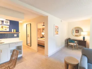 Heyday is White Sands’ signature restaurant, helmed by 2022 James Beard Award winner Chef Robynne Maii. Its 60s-themed style and worldly menu of exotic entrees and crafted cocktails is the perfect complement to the hotel’s boldly retro aesthetic and thoroughly modern approach. You can also enjoy your favorite tropical drink in a swinging chair at the outdoor tiki bar.