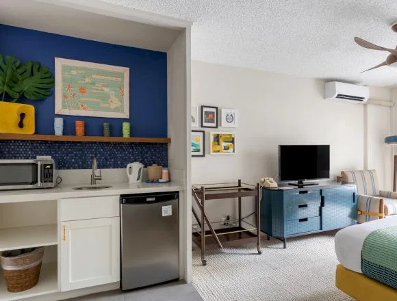 Also on offer at the White Sands Hotel are beach chairs, boogie board, and GoPro camera rentals for a day on the minute-walk-away sands of historic Waikiki Beach. The White Sands Hotel is a unique departure among the towering high rises of Waikiki and a welcome, modern retreat into its groovy history.