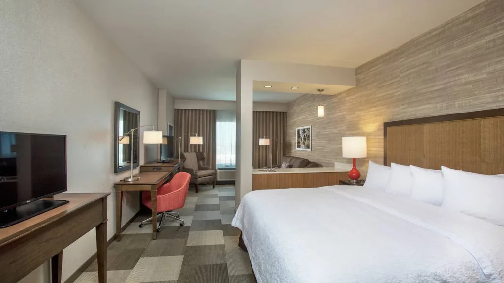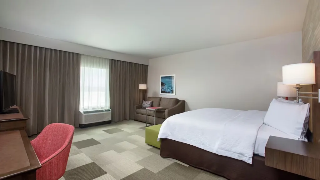Ideal for business travels on the go, Hampton Inn offers free Wi-Fi, meeting rooms, a fitness center, an outdoor pool, and a fitness room. The hotel makes it easy to get in your workout or some relaxation time poolside between meetings or vacation activities.