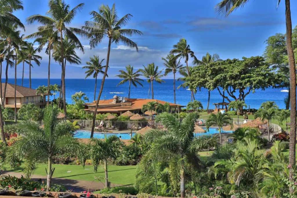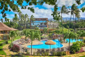 A luxurious condominium resort situated on 11 acres of tropical gardens, the Aston Maui Kaanapali Villas offers guests a variety of amenities in a serene beachside location. The sprawling grounds of the Aston Kaanapali Villas are a testament to nature’s bounty. Tropical gardens, dotted with colorful flora, meandering pathways, and the gentle sound of cascading water features, invite guests to lose themselves in the resort’s serene ambiance.