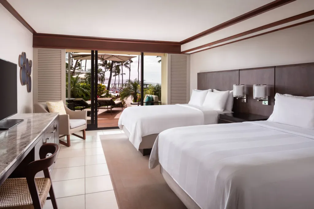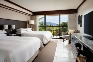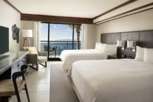Located in the coveted Wailea resort community, the Wailea Beach Marriot Resort and Spa is a luxurious oceanfront resort on Maui’s pristine southwestern shore. Just a few steps from the pacific ocean, Wailea Beach Resort – Marriott, Maui offers an idyllic escape. Revel in meticulously designed rooms that echo the tranquility of the sea, complete with modern comforts like plush bedding, high-speed Wi-Fi, and mini-refrigerators. Experience more than just a stay; dive into a plethora of luxury amenities, from our state-of-the-art fitness center and iconic spa to our championship golf courses. Savor the island’s flavors at our diverse dining venues or bask in the serene ambiance of private floating cabanas. Be captivated by the rhythmic beats of a vibrant luau, and let the cool water of our five resort pools rejuvenate your spirit. Not to mention, our hotel boasts Hawaii’s longest water slide, making for an exhilarating plunge.