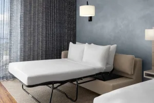 The rooms at the AC Hotel are designed with a sleek and modern aesthetic, featuring comfortable beds, spacious bathrooms, and panoramic views of the surrounding mountains and ocean.