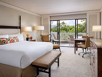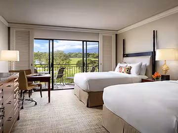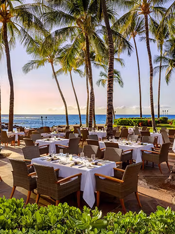 The resort is on a spacious white sand lagoon, perfect for casual swims and relaxing days on the beach. Additional resort amenities include a 10,000-square-foot oceanfront swimming pool, tennis courts, and a 36-hole waterfront golf course rated “Best in Hawaii” by Golf Digest. Guests seeking extra rest should visit The Spa Without Walls for various soothing and luxurious spa treatments in an open-air environment. Those looking to maintain a fitness regimen while on vacation may participate in yoga, Pilates, personal training, and meditation sessions or visit the 24-hour state-of-the-art fitness facility. The resort also features the RU Ready fitness program, a daily athletic program for guests ages 7 to 17.
