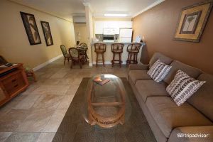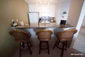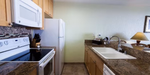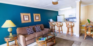 Accommodations include one-, two-, and three-bedroom condominium suites with full kitchens, air conditioning, and private lanais. All the rooms have air conditioning washer/dryer, and everything to make meals. Resort amenities include an ocean-view swimming pool, sun deck, jet spa, barbecue grills, and a party pavilion. Golf and tennis facilities are located nearby. Complimentary parking is provided to all resort guests, and a computer kiosk is available for use in the hotel lobby.