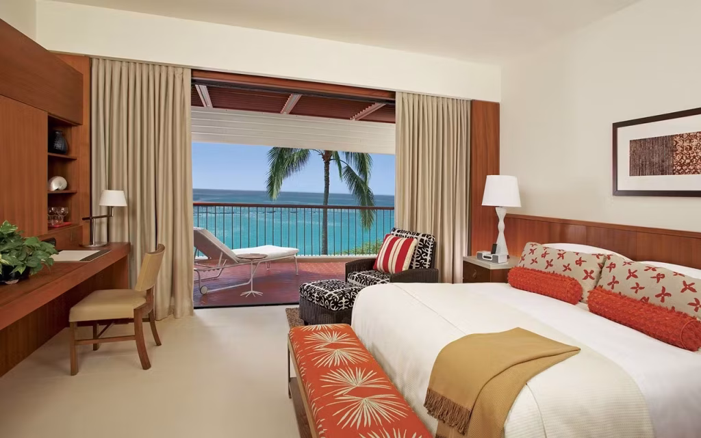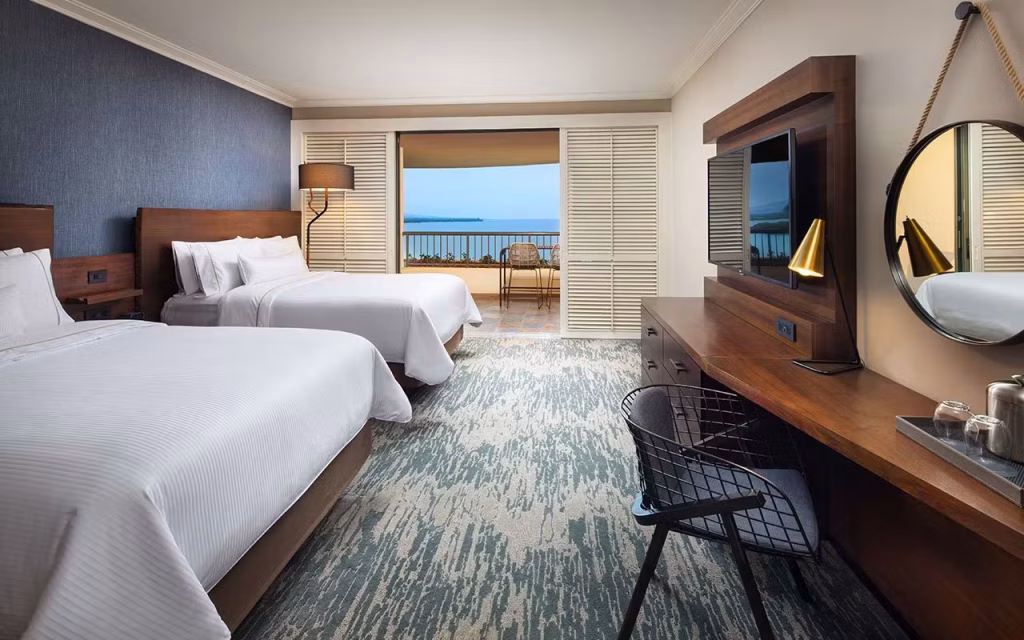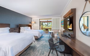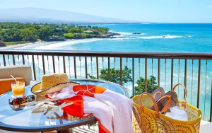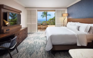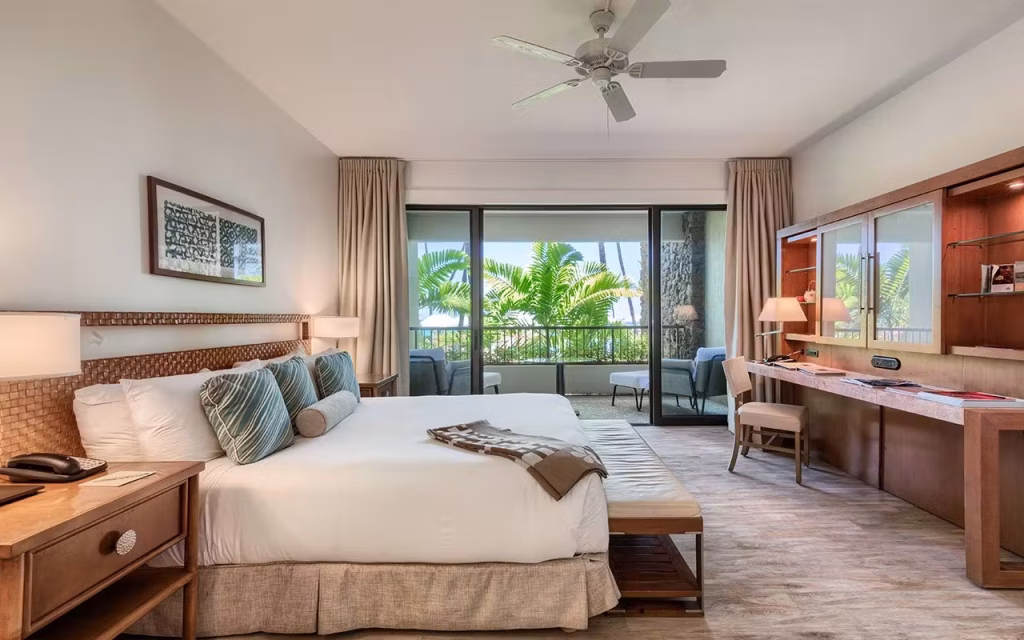 The Mauna Kea Beach Hotel is a luxury hotel located on the Big Island’s beautiful Kohala Coast. The hotel features 258 luxurious guest rooms and suites. All guests receive a fresh flower lei greeting upon arrival and a relaxing check-in service with complimentary refreshments. All guest rooms are exquisitely decorated and offer flat-screen TVs, media hubs with iPod capabilities, internet access, mini-refrigerators stocked with water, bath robes and slippers, luxurious bath amenities, and Kona Blend coffee service. WiFi internet access is available for a daily fee and is accessible throughout the resort property. Valet and self-service parking are available at a daily rate.
