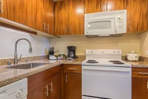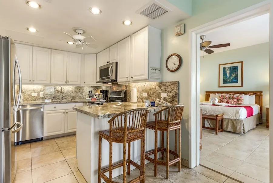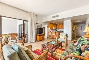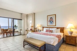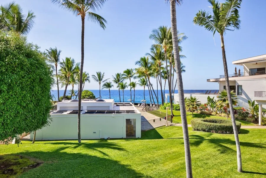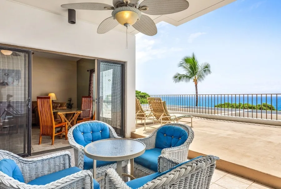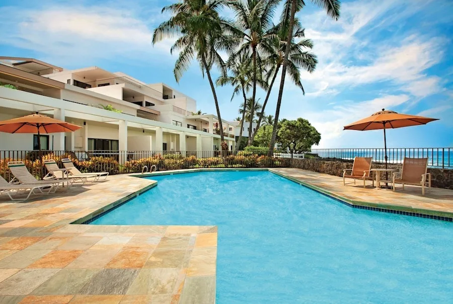 Situated on a rocky bluff overlooking the Pacific Ocean, Outrigger Royal Sea Cliff offers residential-style condominium rentals on the Big Island’s beautiful Kona Coast. Accommodations include studios and one- and two-bedroom suites. The resort has 325 condominium-style units, all with fully equipped kitchens and living areas. Many of the units also have private balconies or patios with ocean views. All units include full kitchens, air conditioning, complimentary WiFi internet access, and in-room laundry facilities. Maid service is provided every three days. The rooms at Royal Sea Cliff are spacious and luxurious, with a modern design that blends seamlessly with the natural beauty of the surrounding cliffs. The rooms all have private balconies or terraces with stunning views of the ocean, and many also have hot tubs or plunge pools. The standard rooms are spacious and comfortable, with king-size beds, plush bedding, and large windows that let in plenty of natural light. The bathrooms are also spacious, with marble countertops and soaking tubs.