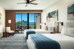 During your stay, you’ll find the airy ambiance of ocean-facing rooms at Waikoloa Beach Marriott Resort & Spa. The moment you step into the Waikoloa accommodations, you are welcomed by contemporary décor that resonates with the very essence of this Hawaiian tropical paradise. Tailored to your preferences, our rooms come in diverse sizes and layouts, each offering a unique panorama. Find your perfect vista here, from serene poolside settings and expansive ocean horizons to picturesque resort sceneries and majestic mountain backdrops. All of the rooms feature contemporary design, deeply influenced by the island’s captivating natural splendor.