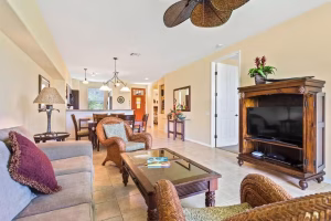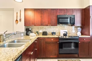 Resort amenities include a swimming pool, poolside gas grills, a fitness center, and complimentary guest parking. Beautiful Anaehoomalu Bay is a half-mile walk away from the resort and is ideal for swimming, snorkeling, and relaxing in the sun. Kings’ Shops and Queens’ Marketplace is within walking distance and offers a wide variety of restaurants, including Roy’s Waikoloa Bar & Grille, Romano’s Macaroni Grill, Sansei Seafood, Steak & Sushi Bar, and Charley’s Thai Cuisine. Additional shops and restaurants can be found at Hilton Waikoloa Village and other nearby resort properties.