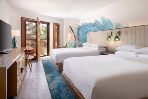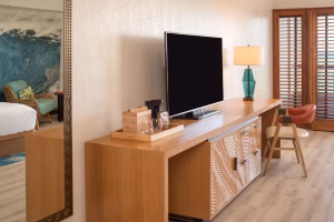 Accommodations include 309 spacious guestrooms and two suites. In-room amenities include complimentary internet access, large work spaces, in-room refrigerators, and private lanais. Perfect for meetings and events, the hotel boasts four meeting rooms and over 5,000 square feet of meeting space. The property features well-appointed rooms and suites that are designed with a blend of traditional Hawaiian aesthetics and contemporary amenities. Spacious and inviting, each room offers a serene escape with comfortable beds, modern furnishings, free Wi-Fi, flat-screen TVs, and private balconies with ocean or garden views.