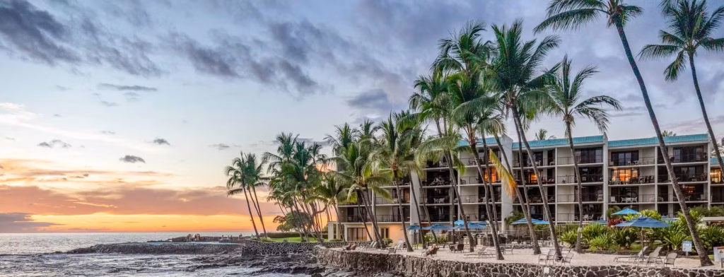 Aston Kona by the Sea is an 86-room condominium resort located in Kailua Kona on the Big Island’s western shore. The resort is set on a rocky shoreline overlooking the picturesque Kona coast. This property is a serene oceanfront haven that encapsulates the enchanting spirit of Kona. Overlooking the Pacific’s vast expanse, this resort offers an intimate Hawaiian escape combined with the panoramic beauty of a tropical paradise. Lush, meticulously landscaped gardens embrace the property, while the symphony of crashing waves provides a harmonious backdrop. The resort’s architectural design pays homage to traditional Hawaiian aesthetics, complemented with modern touches highlighting comfort and elegance.