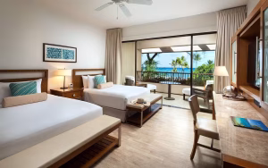 The Mauna Kea Beach Hotel is a luxury hotel located on the Big Island’s beautiful Kohala Coast. The hotel features 258 luxurious guest rooms and suites. All guests receive a fresh flower lei greeting upon arrival and a relaxing check-in service with complimentary refreshments. All guest rooms are exquisitely decorated and offer flat-screen TVs, media hubs with iPod capabilities, internet access, mini-refrigerators stocked with water, bath robes and slippers, luxurious bath amenities, and Kona Blend coffee service. WiFi internet access is available for a daily fee and is accessible throughout the resort property. Valet and self-service parking are available at a daily rate.
