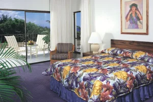 Situated on a rocky bluff overlooking the Pacific Ocean, Outrigger Royal Sea Cliff offers residential-style condominium rentals on the Big Island’s beautiful Kona Coast. Accommodations include studios and one- and two-bedroom suites. The resort has 325 condominium-style units, all with fully equipped kitchens and living areas. Many of the units also have private balconies or patios with ocean views. All units include full kitchens, air conditioning, complimentary WiFi internet access, and in-room laundry facilities. Maid service is provided every three days. The rooms at Royal Sea Cliff are spacious and luxurious, with a modern design that blends seamlessly with the natural beauty of the surrounding cliffs. The rooms all have private balconies or terraces with stunning views of the ocean, and many also have hot tubs or plunge pools. The standard rooms are spacious and comfortable, with king-size beds, plush bedding, and large windows that let in plenty of natural light. The bathrooms are also spacious, with marble countertops and soaking tubs.