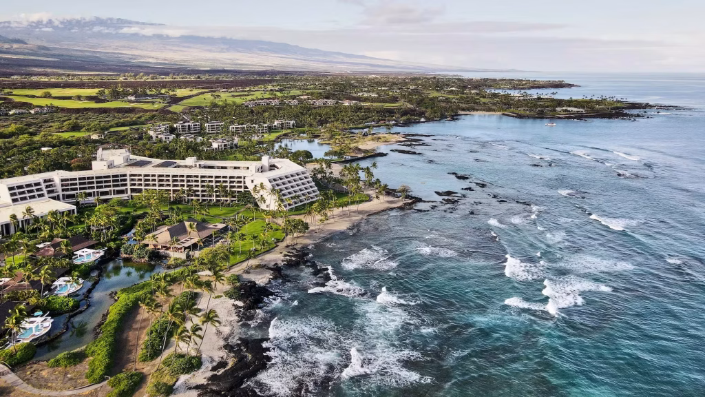 Mauna Lani is a luxurious beachfront hotel on the Big Island’s Kohala Coast. All guests are welcomed to the resort with a fresh flower lei and a tropical beverage. Complimentary tea and coffee are offered daily in the hotel lobby, and complimentary valet or self-service parking is available to all hotel guests. Accommodations include stylish guestrooms and private bungalows.