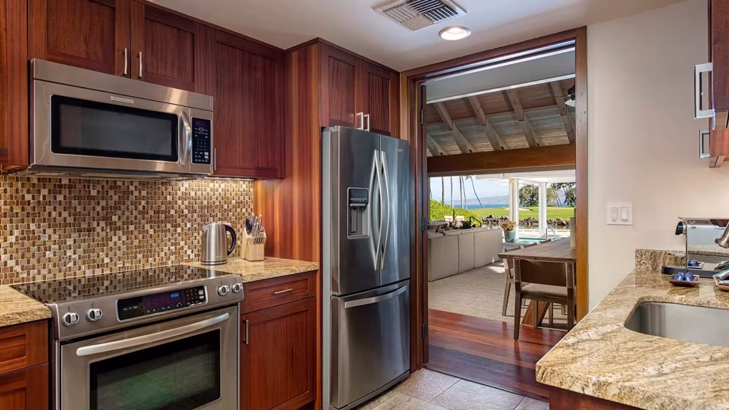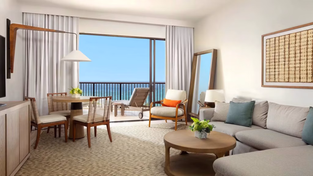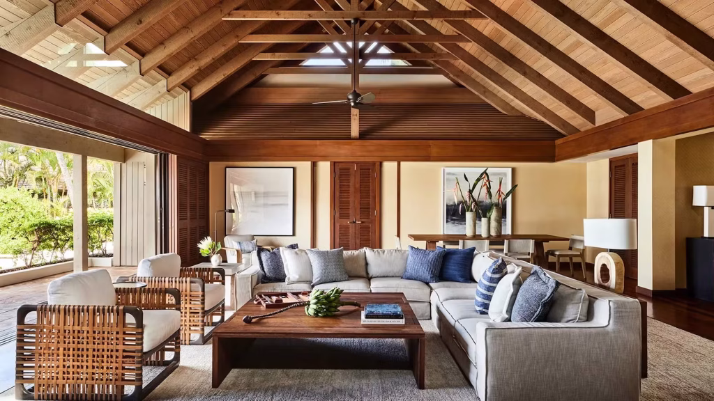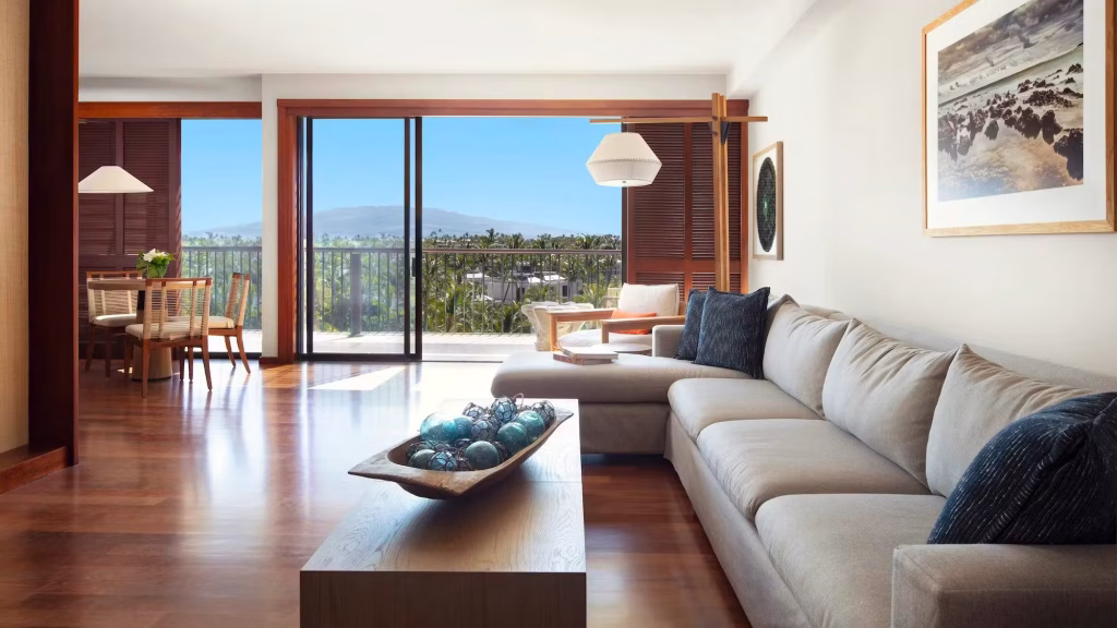 The Mauna Lani guestroom features include private lanais, writing desks, refrigerators, personal bars, luxurious bath robes, complimentary WiFi internet access, coffee makers, and twice-daily maid service. Guests also receive complimentary shuttle service to and from the resort, use of a guest laundry room, and daily newspaper delivery. All bungalows feature two master bedroom suites, large living and dining areas, and an outdoor living area with a private plunge pool and jet spa.